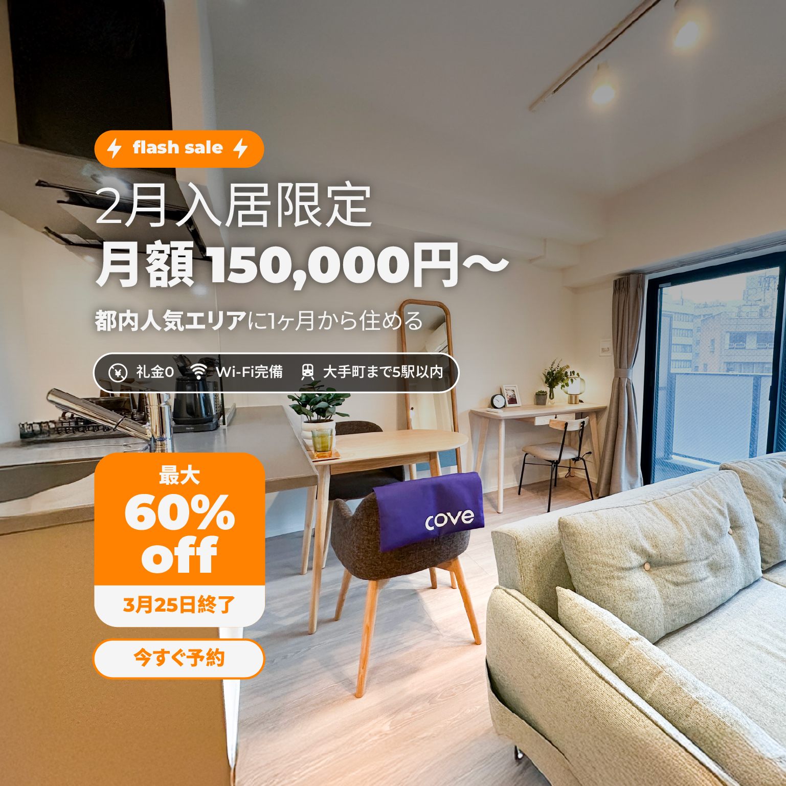 清潔で整ったお部屋と、必要なときにすぐ頼れるサポート。日本での暮らしは、思っているほど大変ではありません。Coveでは、短期滞在から長期滞在まで、快適さ・落ち着き・利便性を大切にした住まいをご用意しています。
